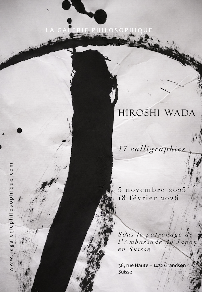 La Galerie Philosophique présente, pour la première fois en Suisse, l’œuvre du calligraphe japonais Hiroshi Wada — une exposition sobrement intitulée « 17 Calligraphies », rassemblant dix-sept créations récentes de l’artiste.