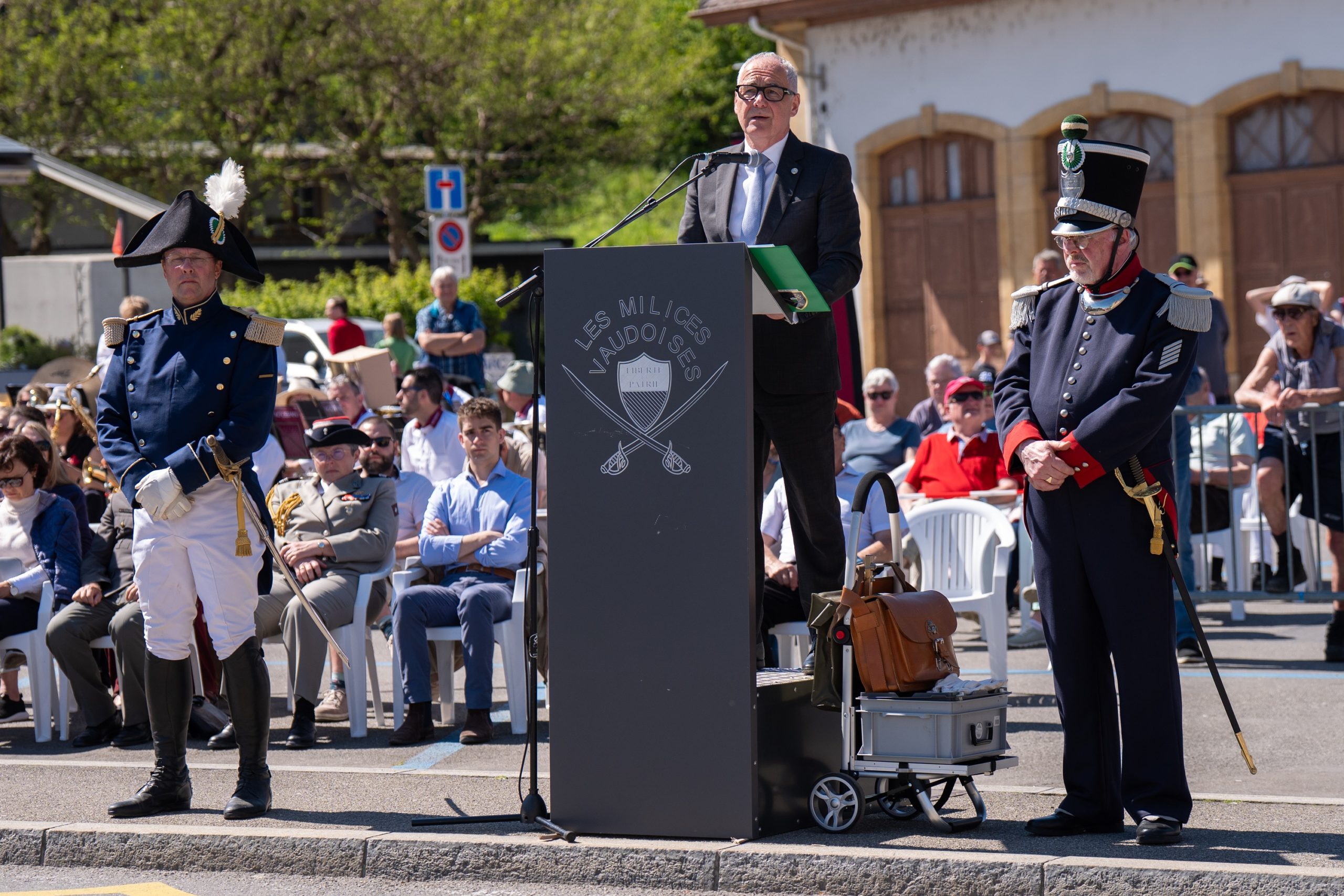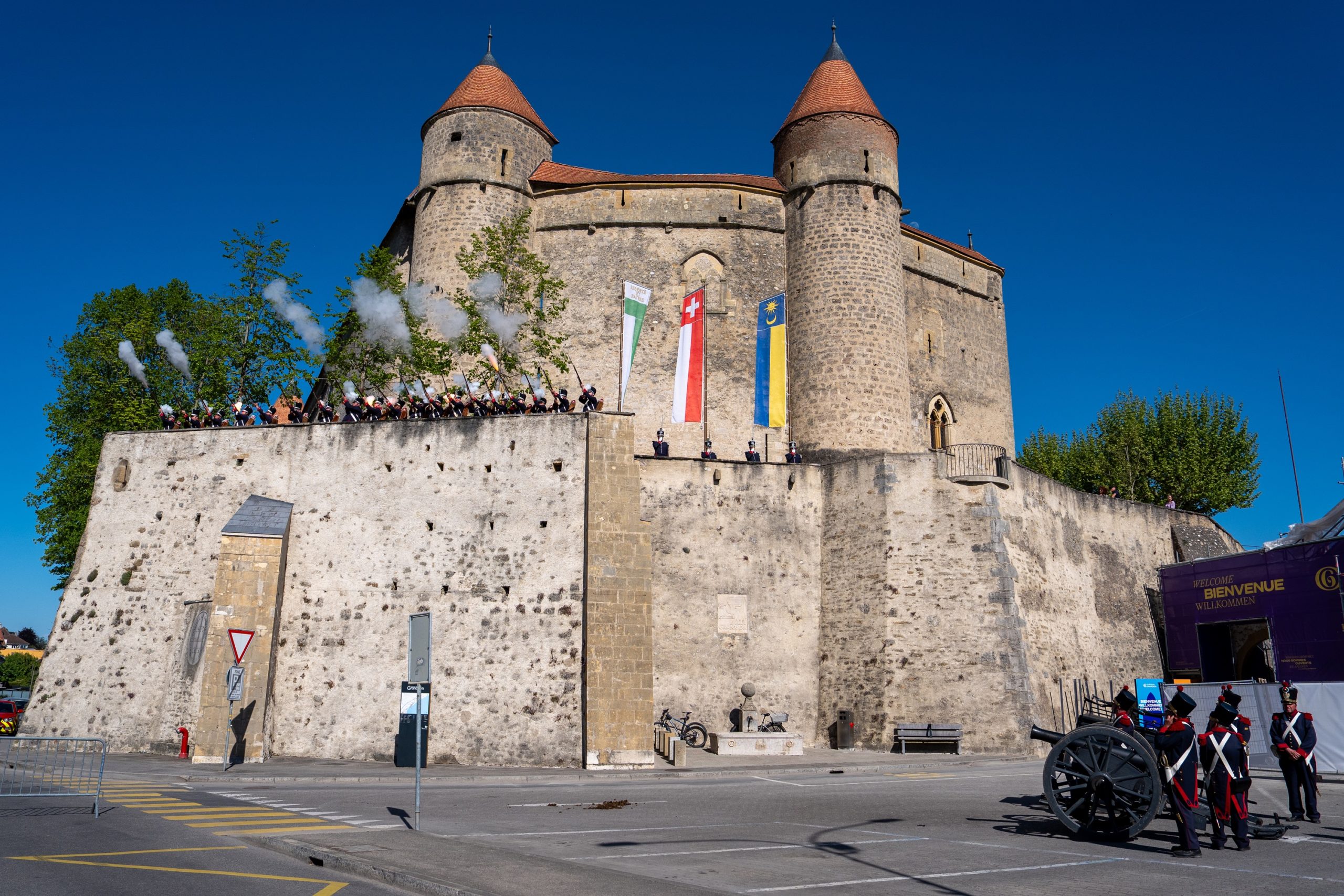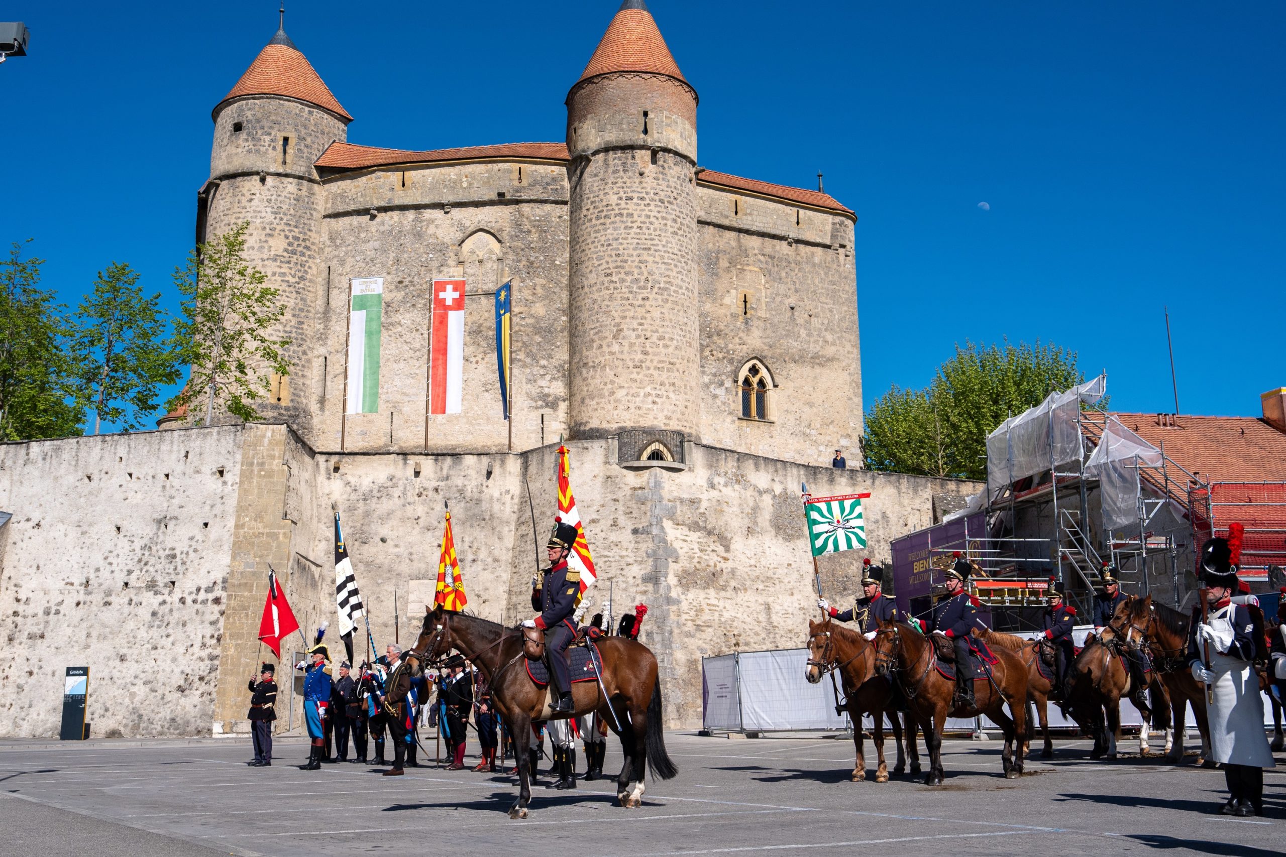 25.04.2026. Grandson. 550 ans de la bataille de Grandson. Prise d'armes de la milice vaudoise. © Gabriel Lado